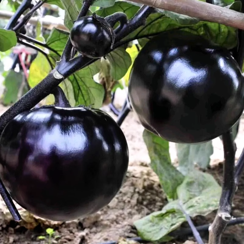 🍆The Black Purple Eggplant is a popular heirloom variety with tender flesh and round purple-black eggplants! This easy-to-grow variety is highly productive, with 30-inch-tall bushes that lift large, fleshy fruits weighing 2 pounds off the ground! Beautiful in the garden and in the kitchen, these purple gems are breaded or fried and eaten as meat. Substitute for vegetarian or vegan dishes. It is also an important source of dietary fiber, iron, potassium and protein.