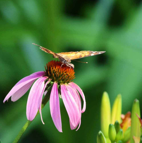Growing: Water seedlings until they become established. Unlike most coneflowers, Purple Coneflower does not do well in drought conditions and needs adequate moisture. The area should be well-drained to avoid soggy soil, since this can cause disease. Keep competition to a minimum in the first year of growth, since this plant cannot reach its full potential when crowded by weeds. After several years of growth, mature plants can be divided in late fall. This plant attracts hummingbirds, butterflies and bees.