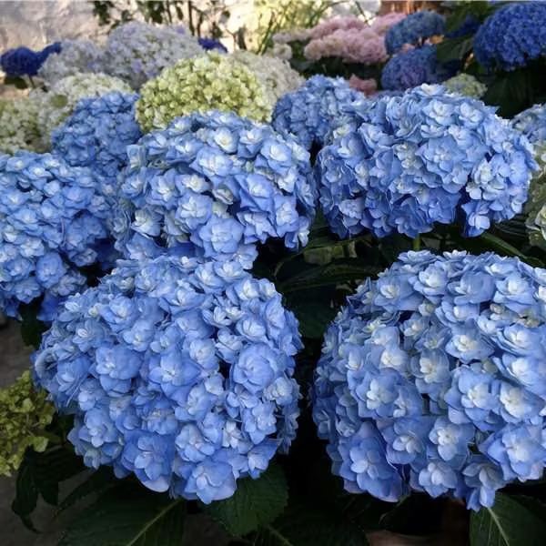 Outdoor hydrangea Miss Saori blue is a hardy perennial that will display its flowers in your garden from June to September. To keep the color of the hydrangeas prominent, the use of Hydrangea Blue Fertilizer (Product No. 673) is recommended. It grows to a height of about 100 cm and is compact with a width of 80-100 cm. This novelty hydrangea or outdoor hydrangea is hardy with striking blooms, and is also suitable as a container plant with plenty of water. (Hydrangea)