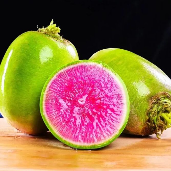 🥕Radish watermelon is a radish variety with a unique and colorful appearance.This beautiful vegetable is popular in the gardening community, where it stands out not only for its striking appearance, but also for its crisp taste and versatile uses.