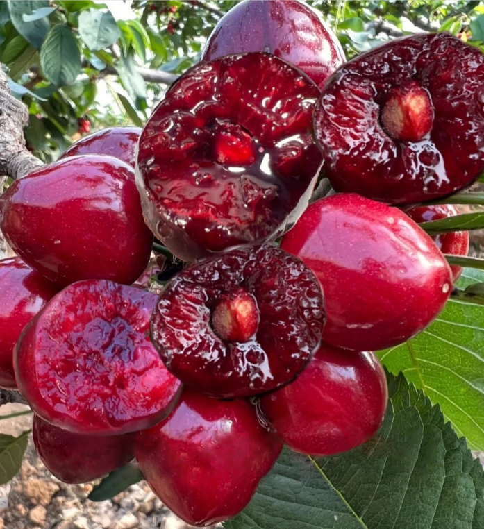 🍎Cherries are dark red in color. The fruit is large, solid and juicy. It has a sweet taste and is slightly pink and moist. The flesh is delicate, clear in color and the juice is colorless. It is fragrant and delicious in the mouth, sweet and tender.