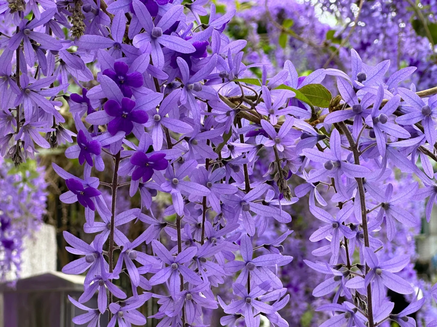 🌸The blue flower vine has dense branches and bright flowers that hang down in clusters and can cover the trellis in patches, creating a spectacular picture of flowers without leaves.