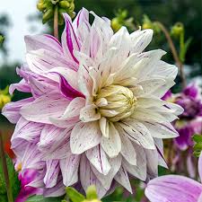 Bonesta’ is a 4” white decorative dahlia with irregular pink stripes, each flower is unique and beautiful.