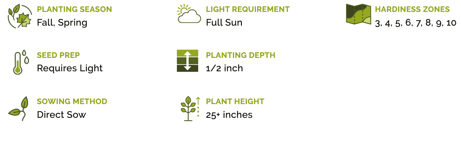 For Fall planting, make sure you plant the seeds after the first killing frost to eliminate any chance of germination. Planting in the Fall gives you a jump start on Spring blooms.