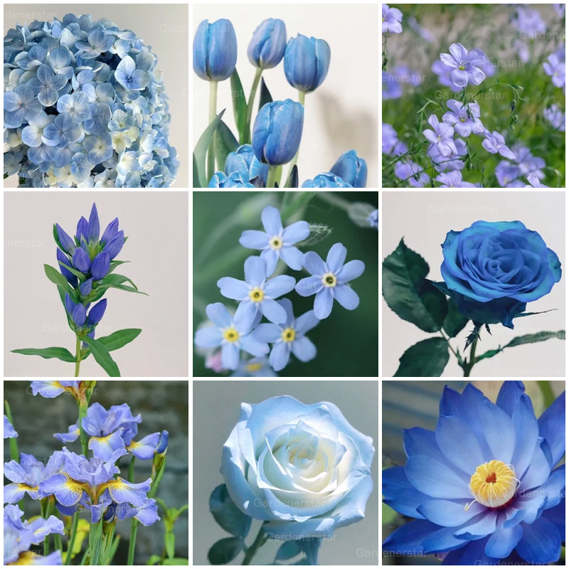A monochromatic mix of all shades of Blue Flowers