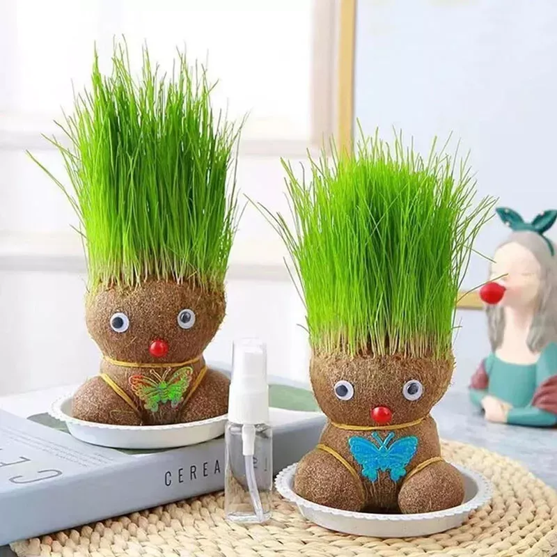 🧸Mini Grass Head Doll Small Potted Plant Watering Green Plants 🪴