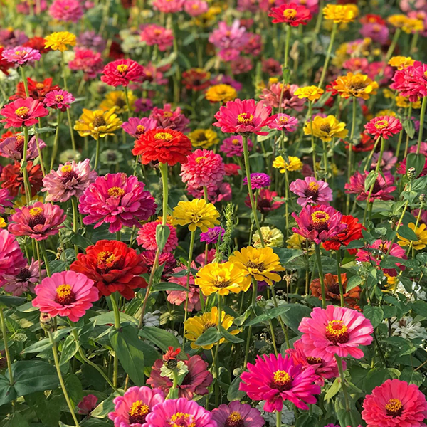 Turn over the soil in the area you want to plant your zinnias and work in 2 or 3 inches of compost or peat moss to help improve soil fertility and drainage. Plant the seeds only about ¼” – ½” deep and you should see seedlings sprout in four to seven days. Once the seedlings reach about 3” tall, thin them to maximize air circulation, and prevent powdery mildew. The dwarf varieties, reaching a height of 1 to 1 ½ feet, should be planted or thinned to about 9” apart, while the taller 3-feet varieties should be spaced about 1 foot apart. If starting your zinnias indoors, fill up your pots with organic potting mix. Saturate the potting mix with water and then place two zinnia seeds into each planting cell or pot. Press into the soil for good seed-to-soil contact and then cover with approximately ½” of the potting mix. Place your zinnias in an area that will receive plenty of warmth (65-70F) and light. Keep your zinnia seeds moistened, checking on them every day or two. Expect to see germination in about 7 to 10 days. Once your seedlings reach about 2 ½ - 3” tall, they are ready to be transplanted outdoors. Zinnias may be transplanted with ease, as it is possible to move the plants when they are in full flower! Although they thrive best in full sun, they will also endure partial shade.