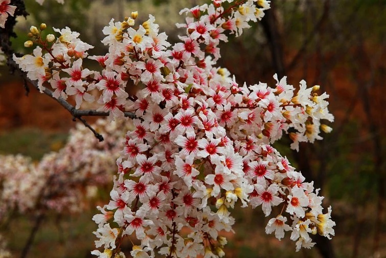 🌺Characteristics: Tree pinnate leaves, white flowers with red centers, brown capsules with 3-5 seeds.